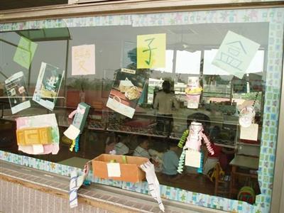 ˙扮演區:教室門口掛了一張招牌,是我們自己做的喔!